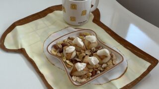 今日の朝ごはん朝ごはんの準備をしていきます。材料ミニスコーン 6個ナッツ&バナナチップ 1袋ミルクチーズクリーム 適量・・・トーストプレート (材料?)ミニスコーンは以前カルディで購入した、フードトラック缶に入っていた物です。やっと食べる時...