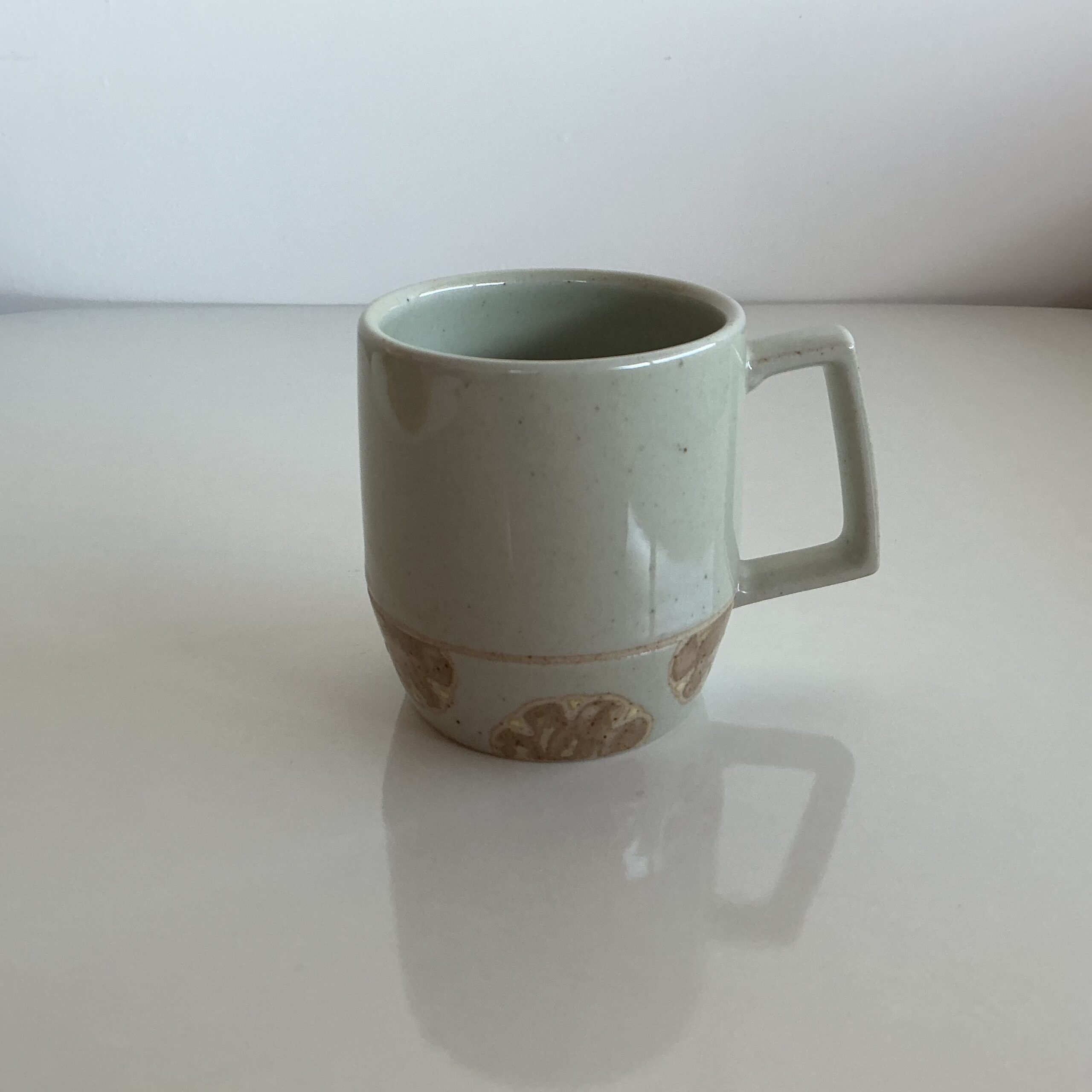 ころんとしたフォルムで四角い持ち手が素敵なマグカップ