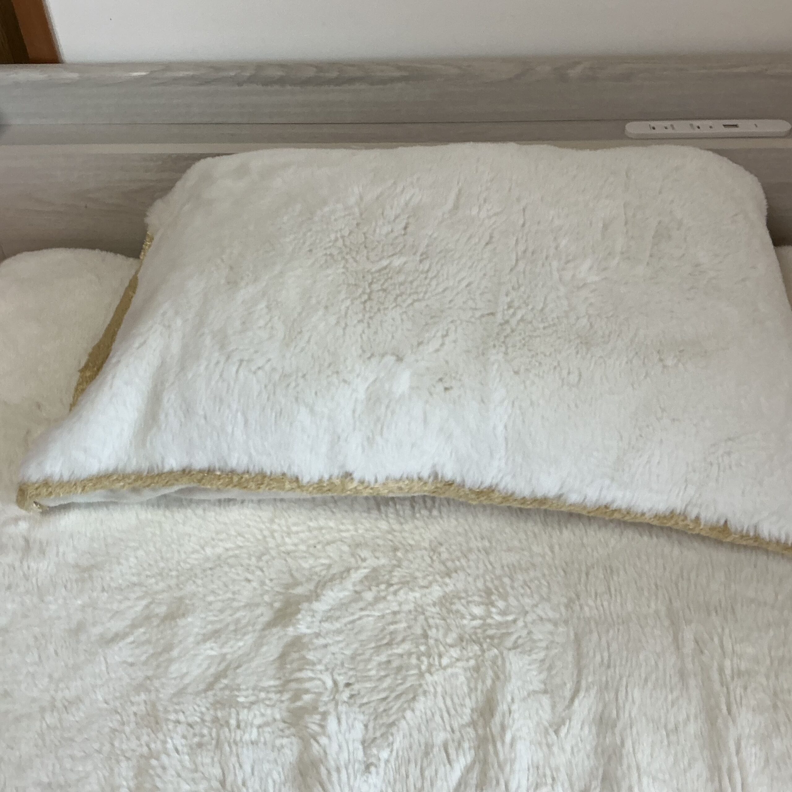 毛足の長いふわふわ生地なので、寝ている時に首とか痒くならないか心配だったのですが、全然平気でした。