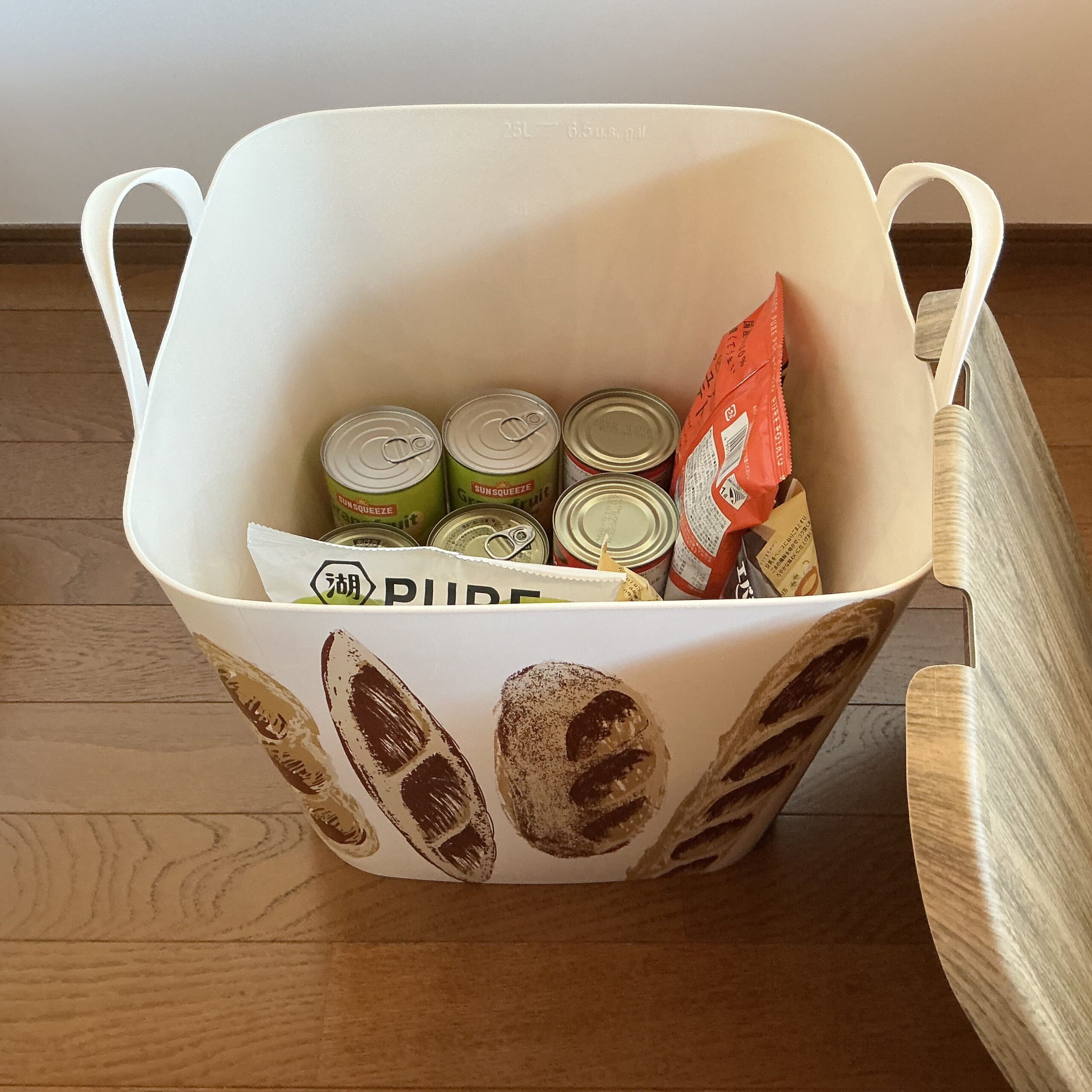 そのgochisouのパン柄の収納バケットが、お部屋の中にあるよろこび♪