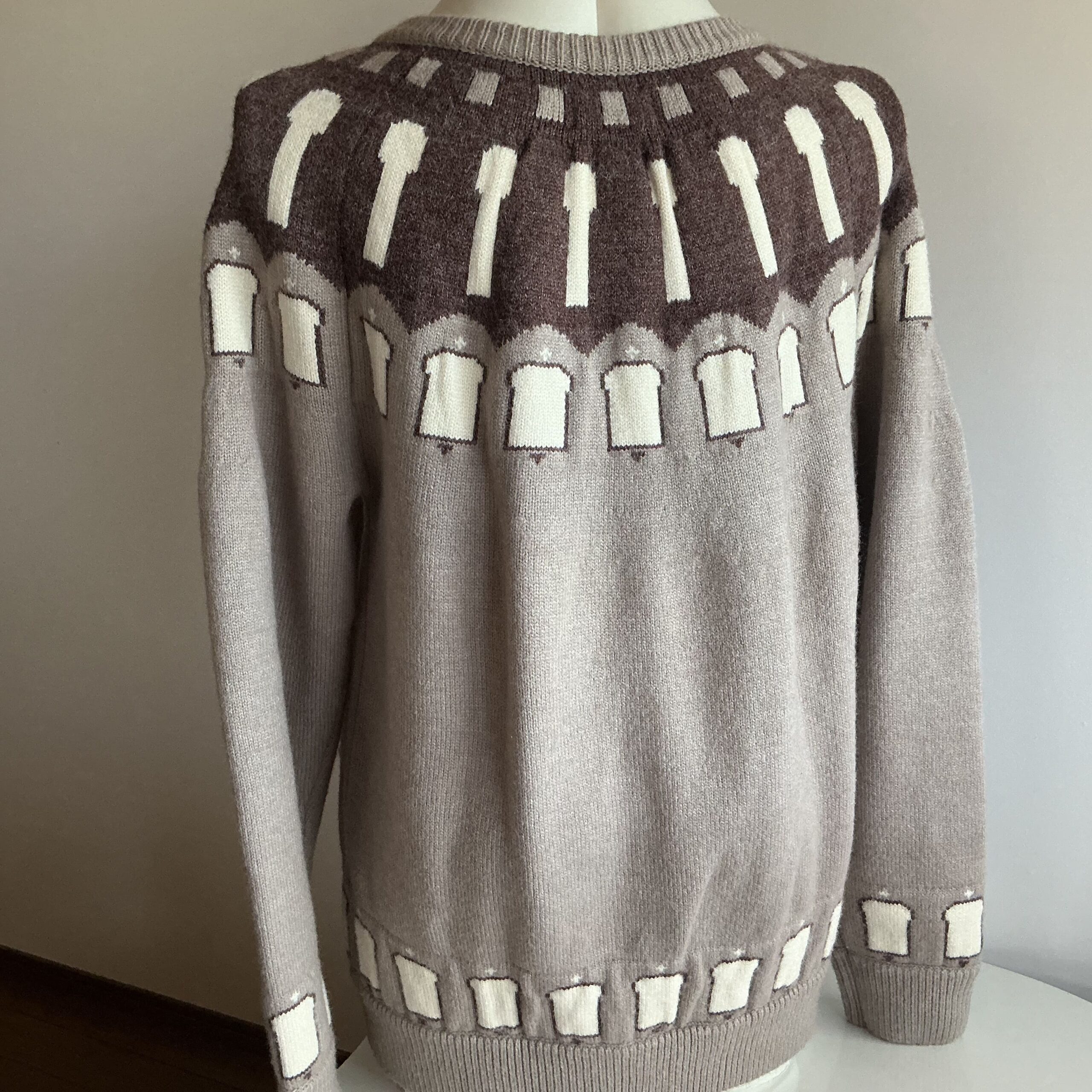 数えてみたら、46枚の食パンがこのカーディガンの中に描かれていました。