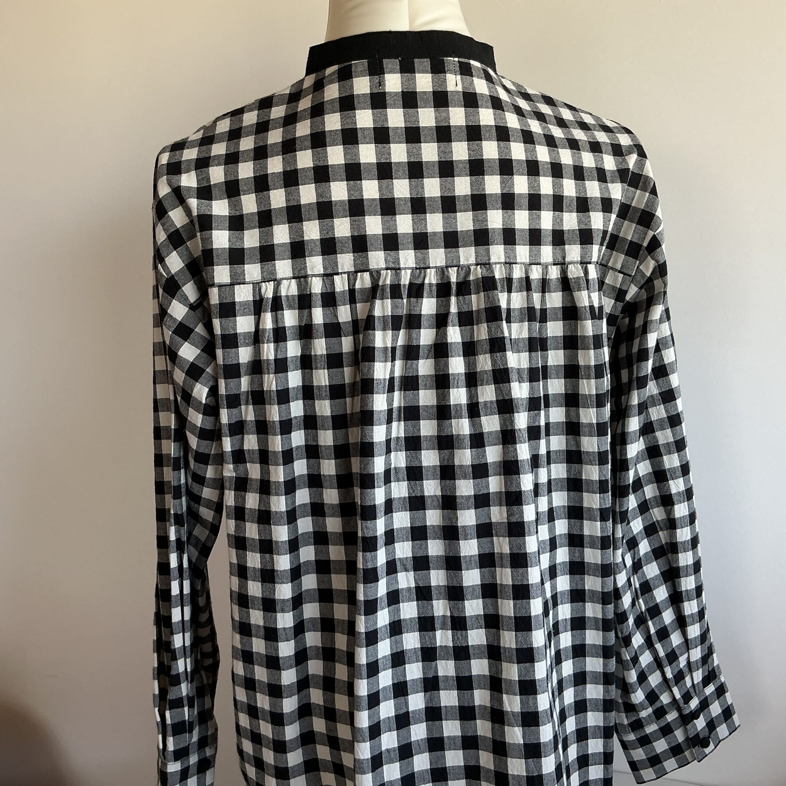 背中がシャーリングになっていて、すとんと着るだけでふんわりとした印象になるのが好みです。