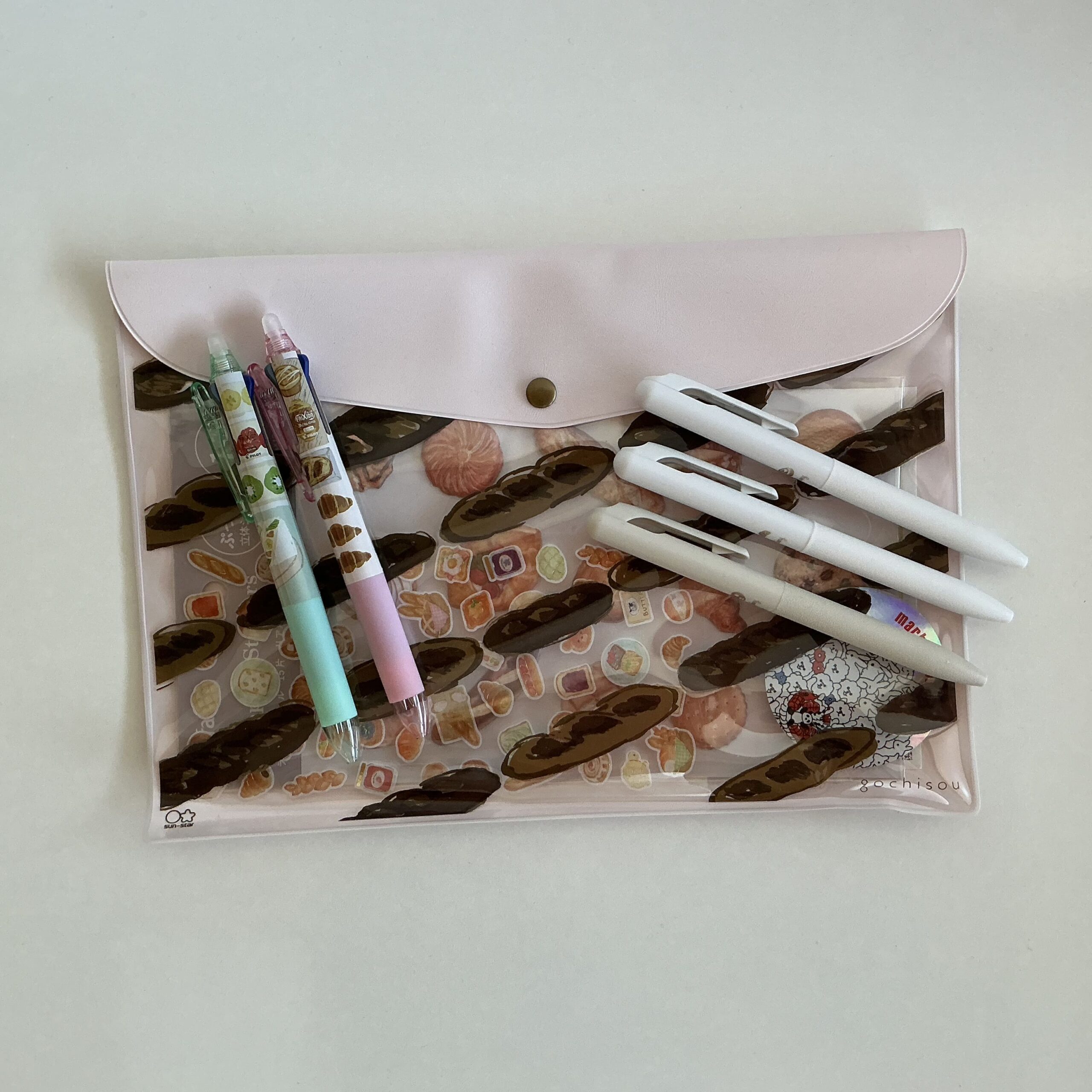 今まで、ペン類はシールと一緒に、gochisouのクリアポーチに収納していました。