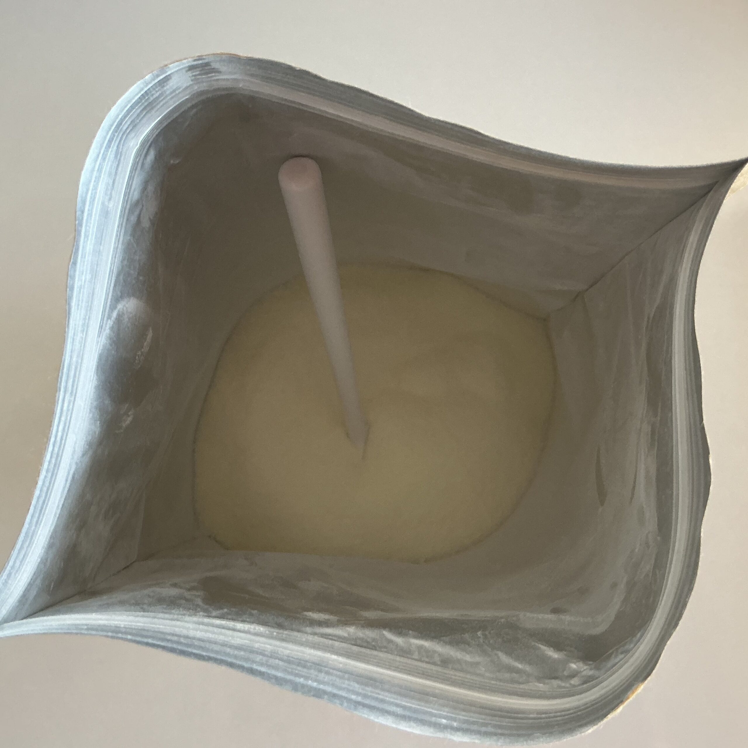 袋が丈夫なので破れたりせず使えるのですが、掬う時にスプーンが袋の内側にあたり、銀色の塗装が剥がれて粉に混ざってしまうというトラブルが発生。