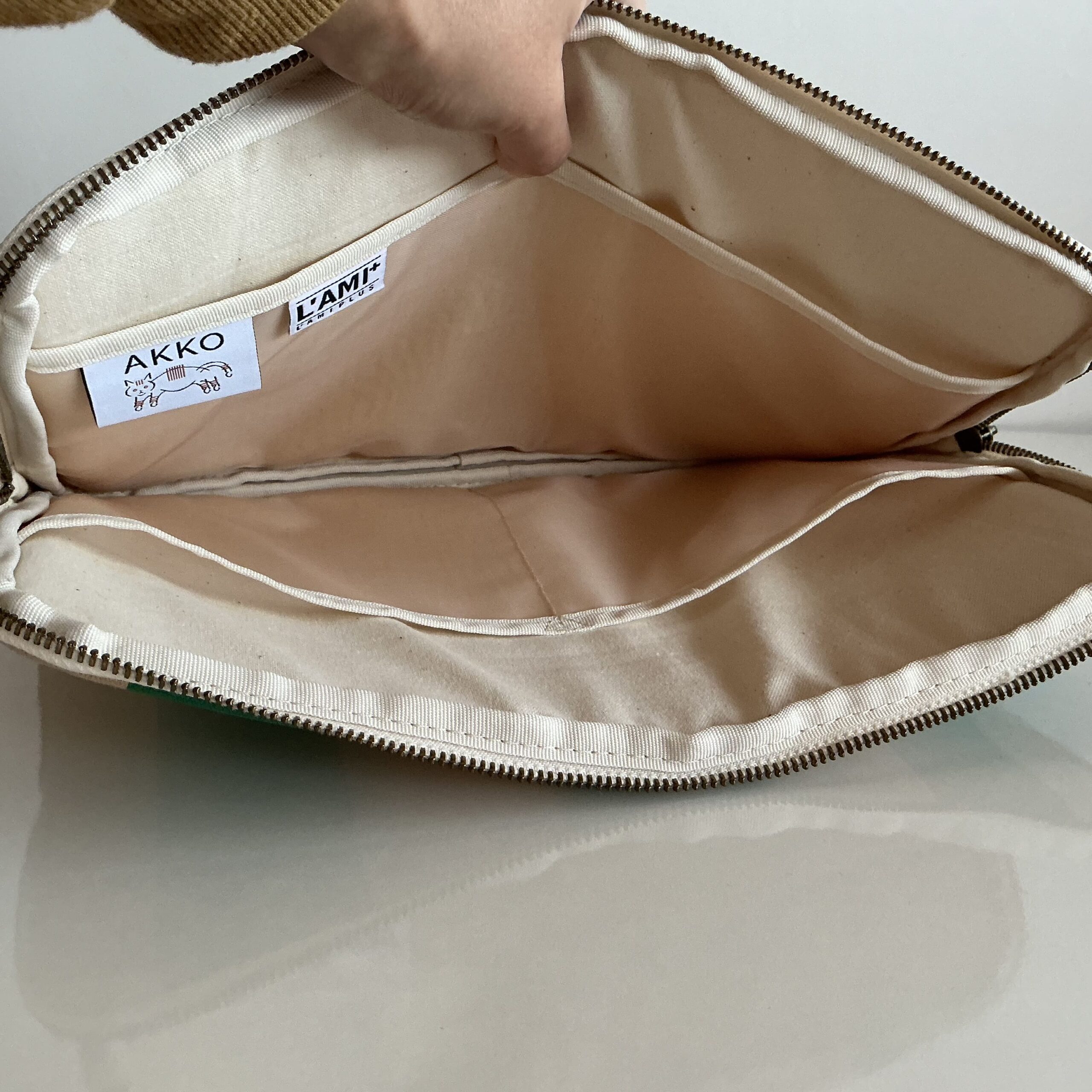 ファスナーを開けると目に入る、ねこちゃんのタグがかわいい♡
