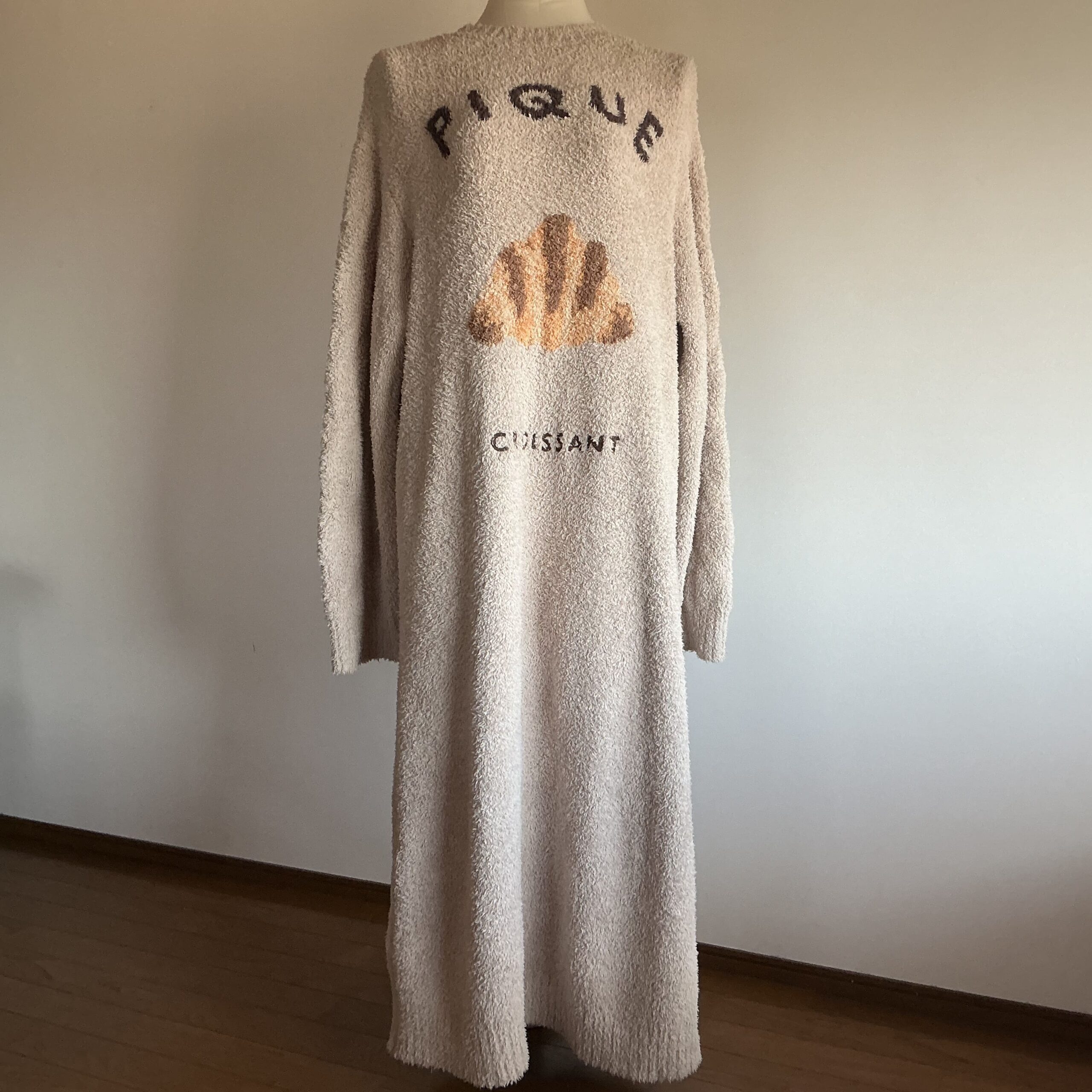 モコモコ素材でゆったりサイズで丈の長いワンピースです。