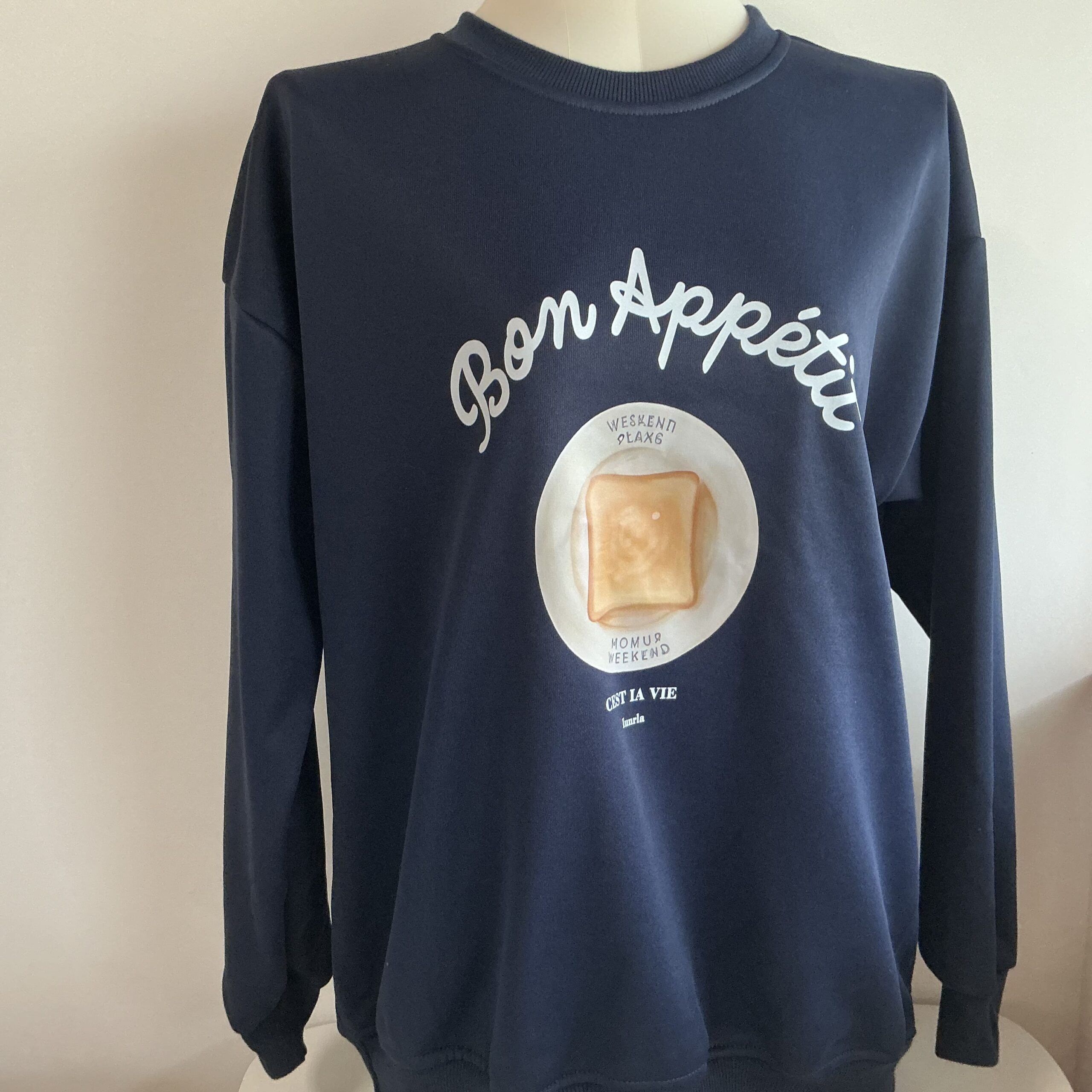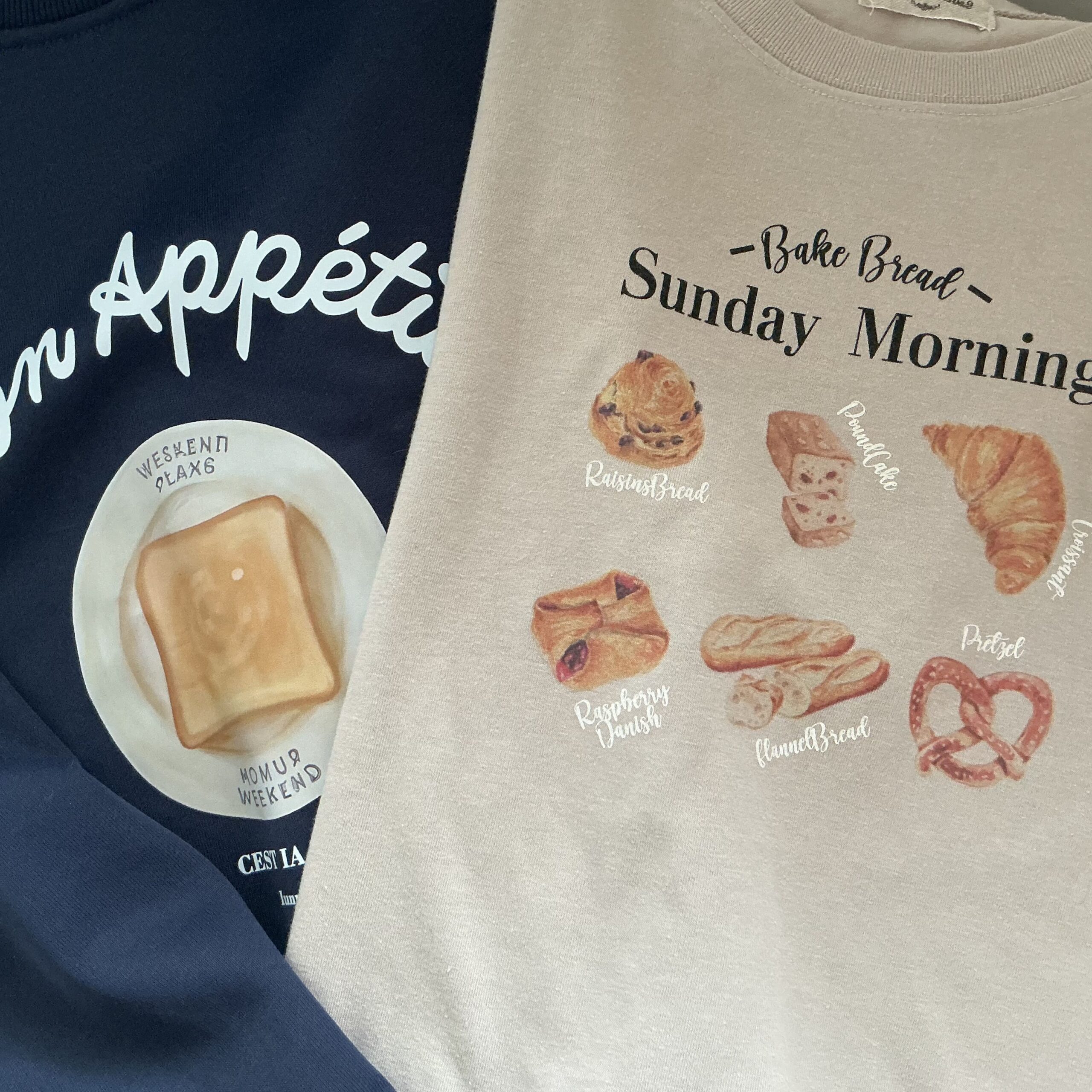 お皿に乗ったこんがりトーストが目を惹くスウェット