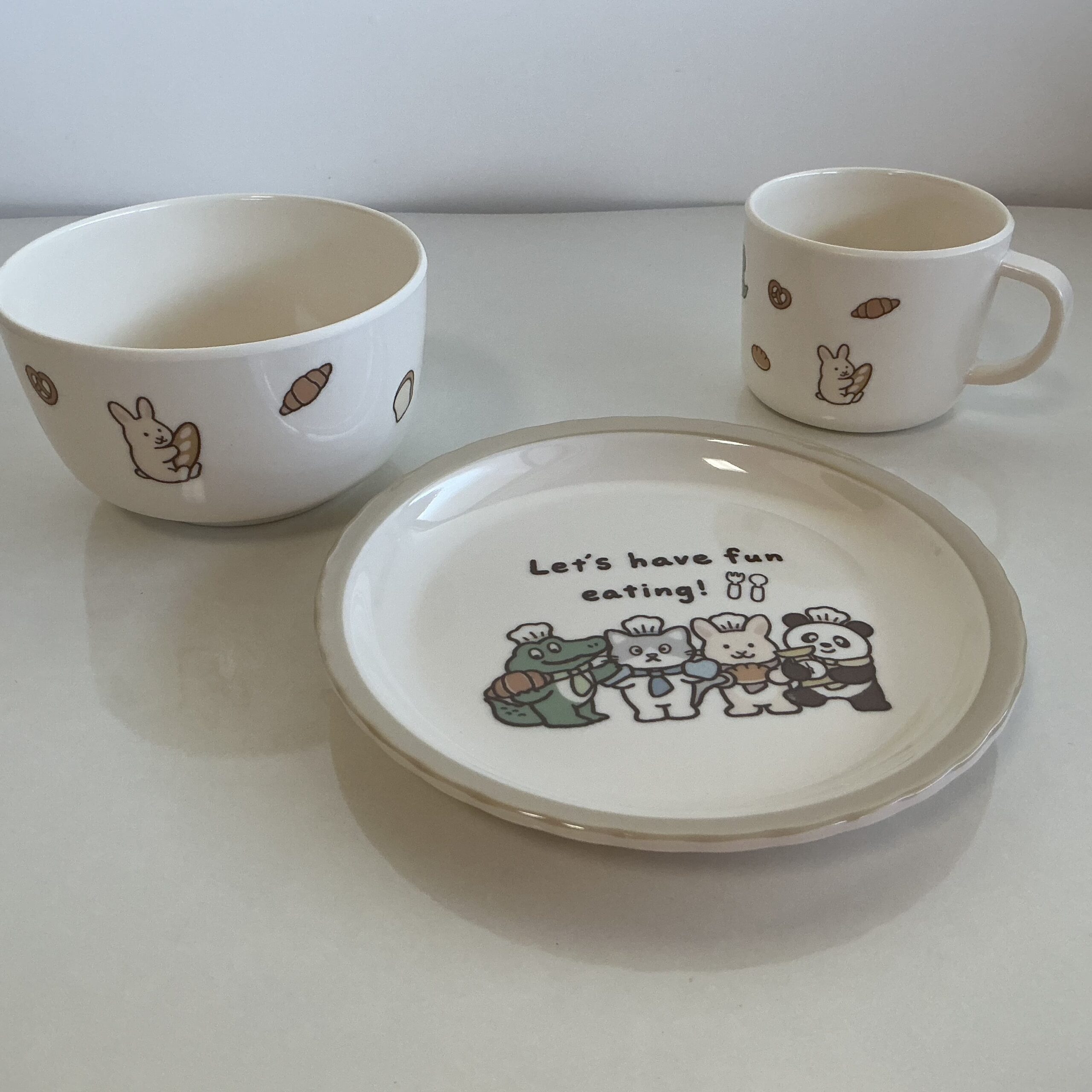イラストがかわいすぎたのと、お菓子づくりする時などに、軽くて扱いやすいやすい食器があると便利だよねーと自分に言い訳して購入しました。