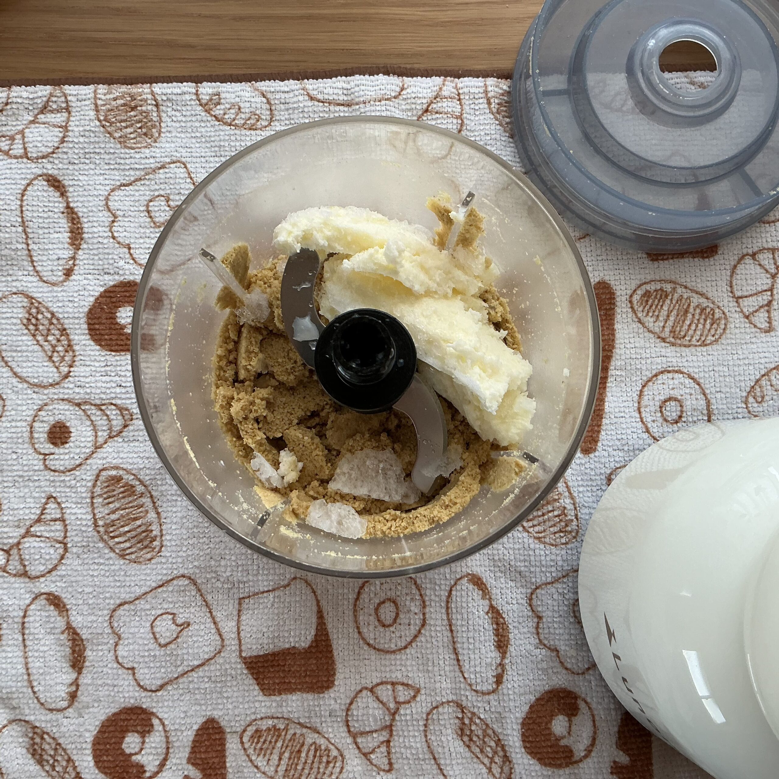 グラノーラ粉の入っているフードプロセッサーにクリームチーズアイスを投入します。
