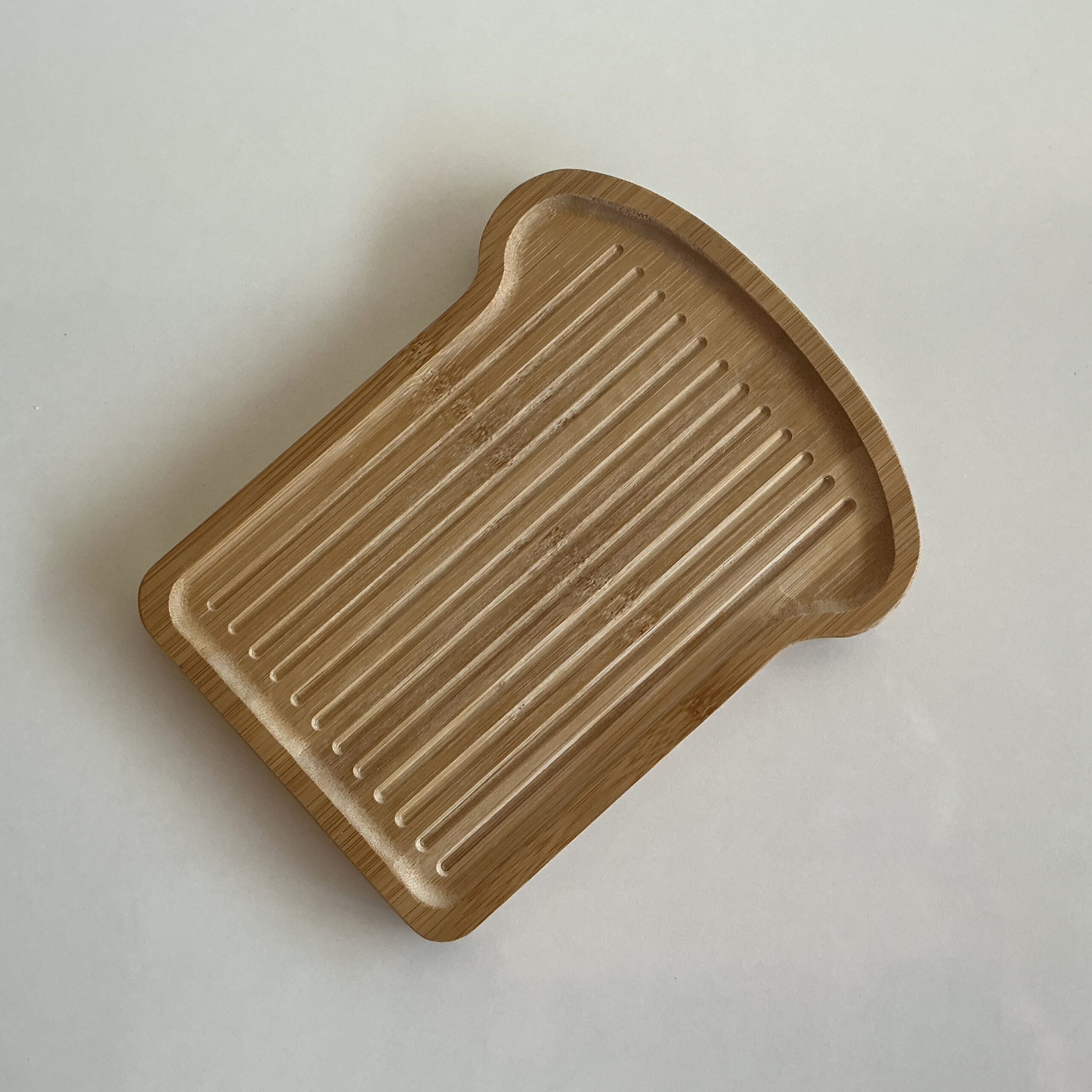 実際のトーストよりもひとまわり大きいお皿で、形もかわいく、トレーとして使うと気分が上がるし映えるので、こんな使い方をしています。
